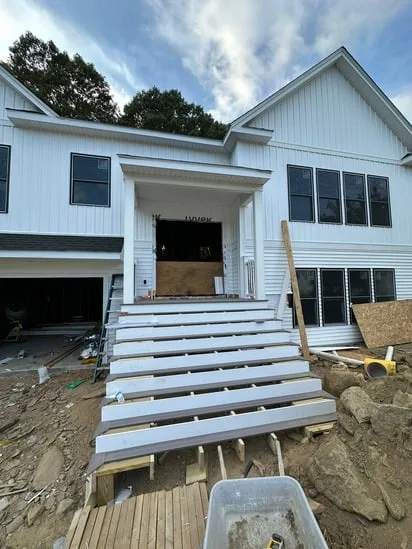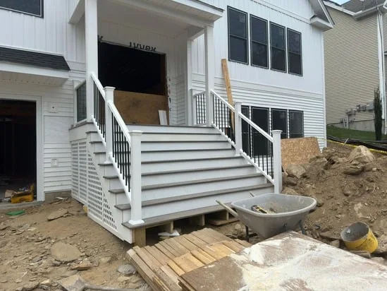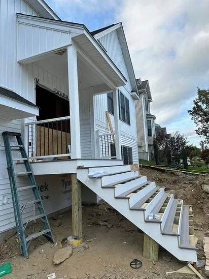 This project involved front porch stair construction, and as a result, the main entryway was structurally built to align with the home’s elevation. Additionally, the work included precise stair framing, secure rail installation, and integrated lattice panels beneath the porch. Throughout the process, transitions between structural elements were carefully executed to ensure stability, proper drainage, and visual consistency with the existing exterior.